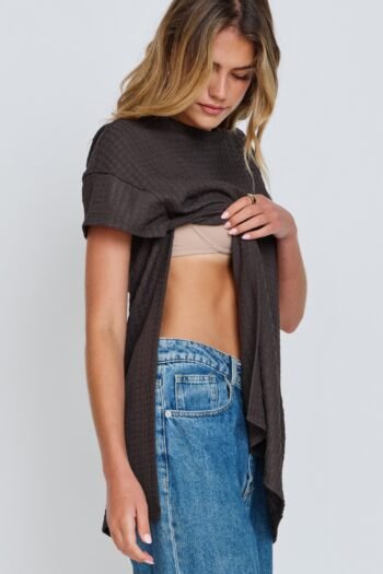 Franca Textured Side-Wrap Tunic Tee – Gunmetal