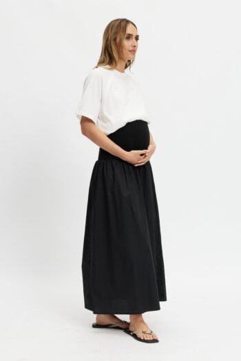 Emmy Drop-Waist Jersey Poplin Midi Skirt – Black