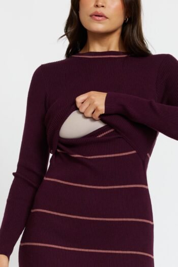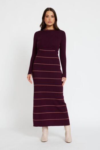 Zoe Knit Long Sleeve Dress – Mulberry / Rose