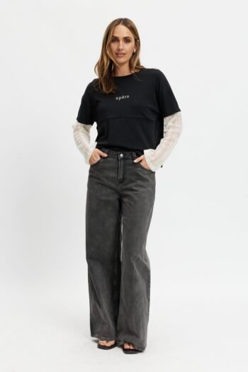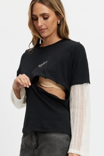 Carson Layered Long Sleeve Panel Tee – Black / Cream