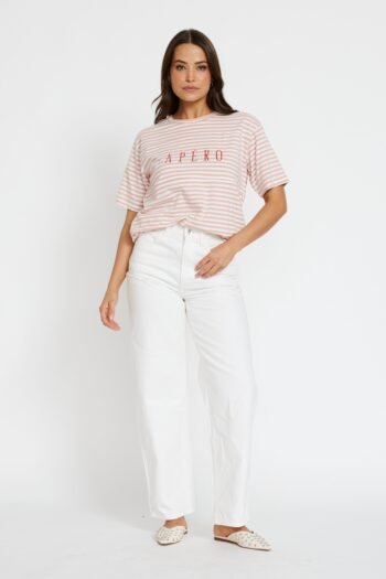 Classique Stripe Box-Cut Tee – Latte / Navy