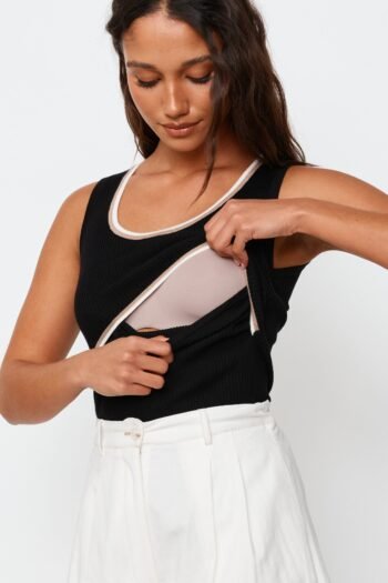 Cali Embroidered Longline Panel Tee – Olive / Pink