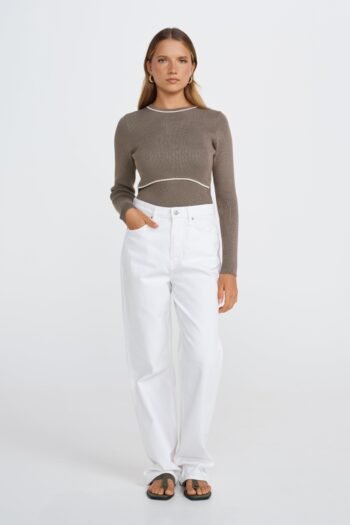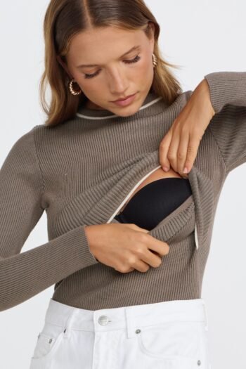 Rowe 2.0 Long Sleeve Knit Top – Khaki / Cream