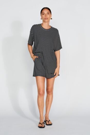 Ivy Stripe Longline Wrap Tee – Cream / Tan