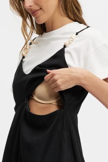 Olivia Layered Two-Piece Babydoll Dress – Black / White