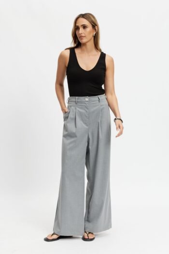 Finished with a high-rise waist and full-length wide leg for an elongating silhouette, this style is crafted from a lightweight rayon-linen blend in a natural stone hue — offering the drape of linen with low-maintenance wearability.