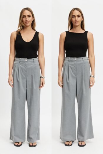 The Bailey Adjustable Wide Leg Trouser in Natural, offers timeless tailoring with clever design details to adapt to your body — through pregnancy, postpartum, and well beyond.