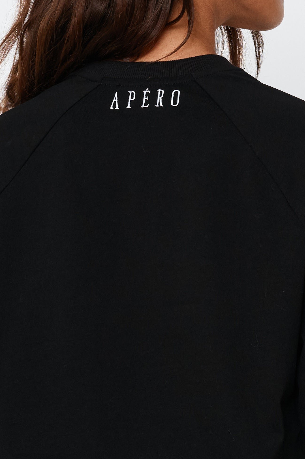Designed in a soft black fabric, featuring a small Apéro logo in white embroidery at the back neck.