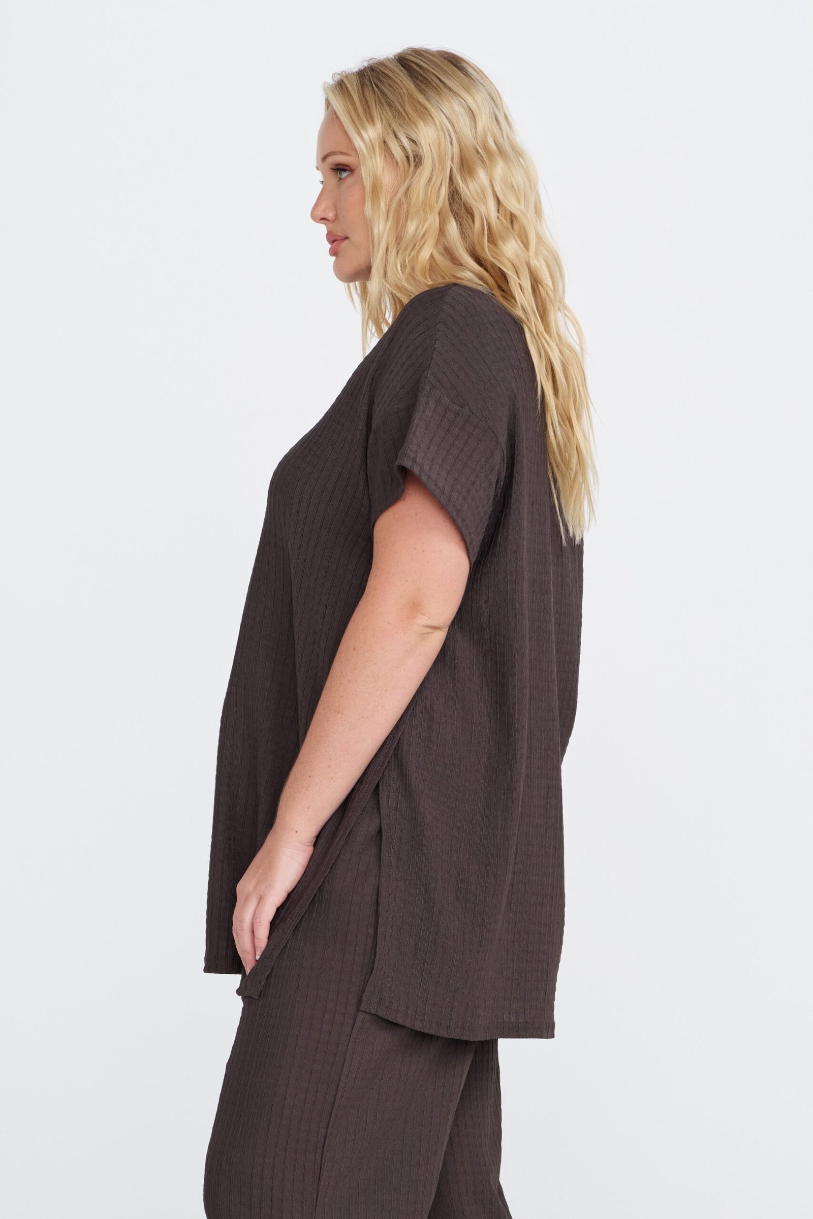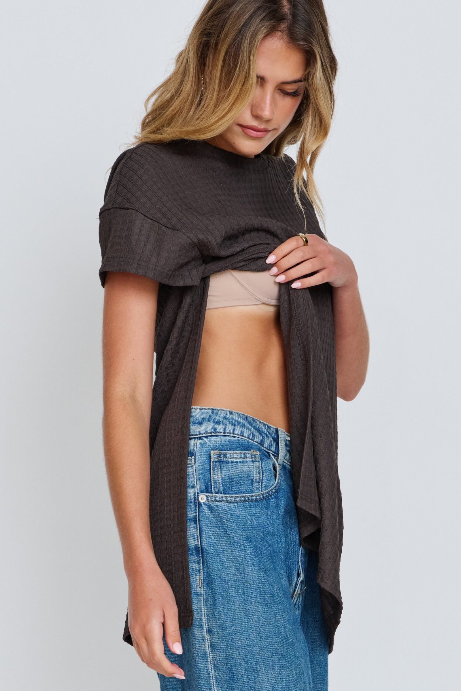 In a chic gunmetal grey, this tee is finished with drop shoulders and cap sleeves, making it a must-have for your transeasonal wardrobe. Whether you’re expecting, nursing, or simply looking for everyday comfort, Franca is designed to move with you.