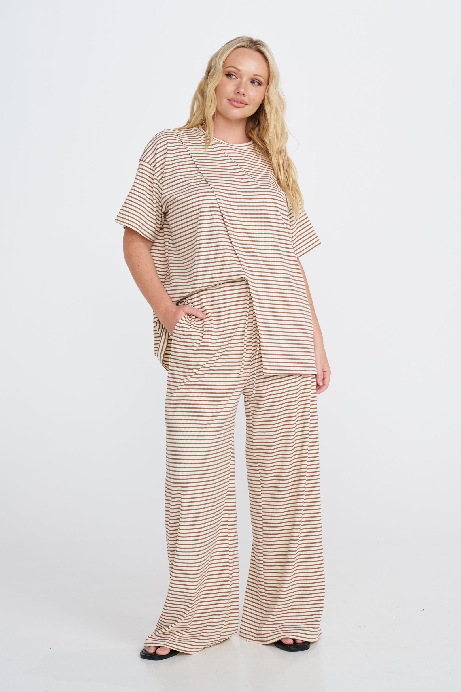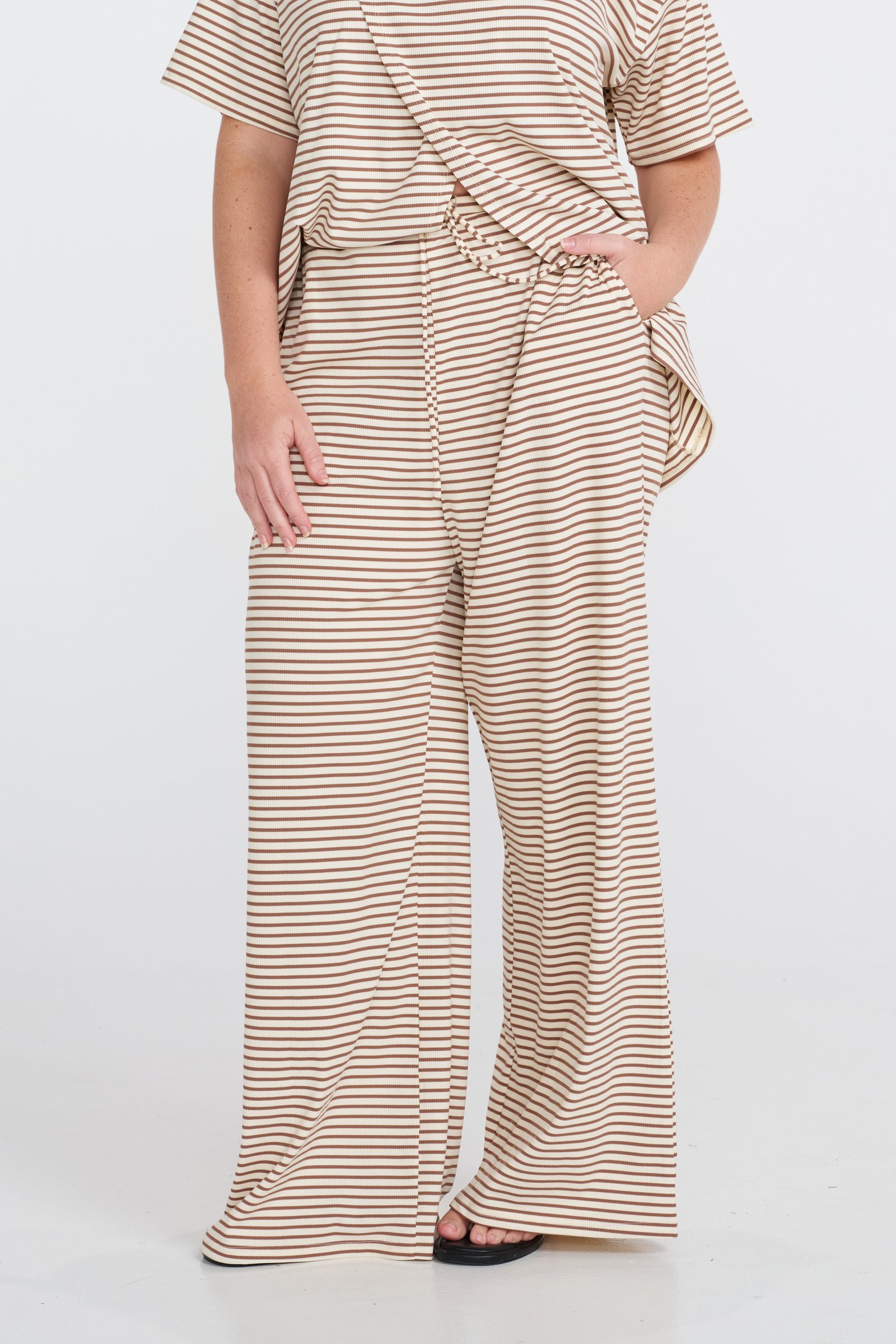 Elevate your ensemble by pairing these wide-leg pants with the matching Ivy Wrap Longline Tee for a coordinated look that effortlessly balances comfort and fashion.