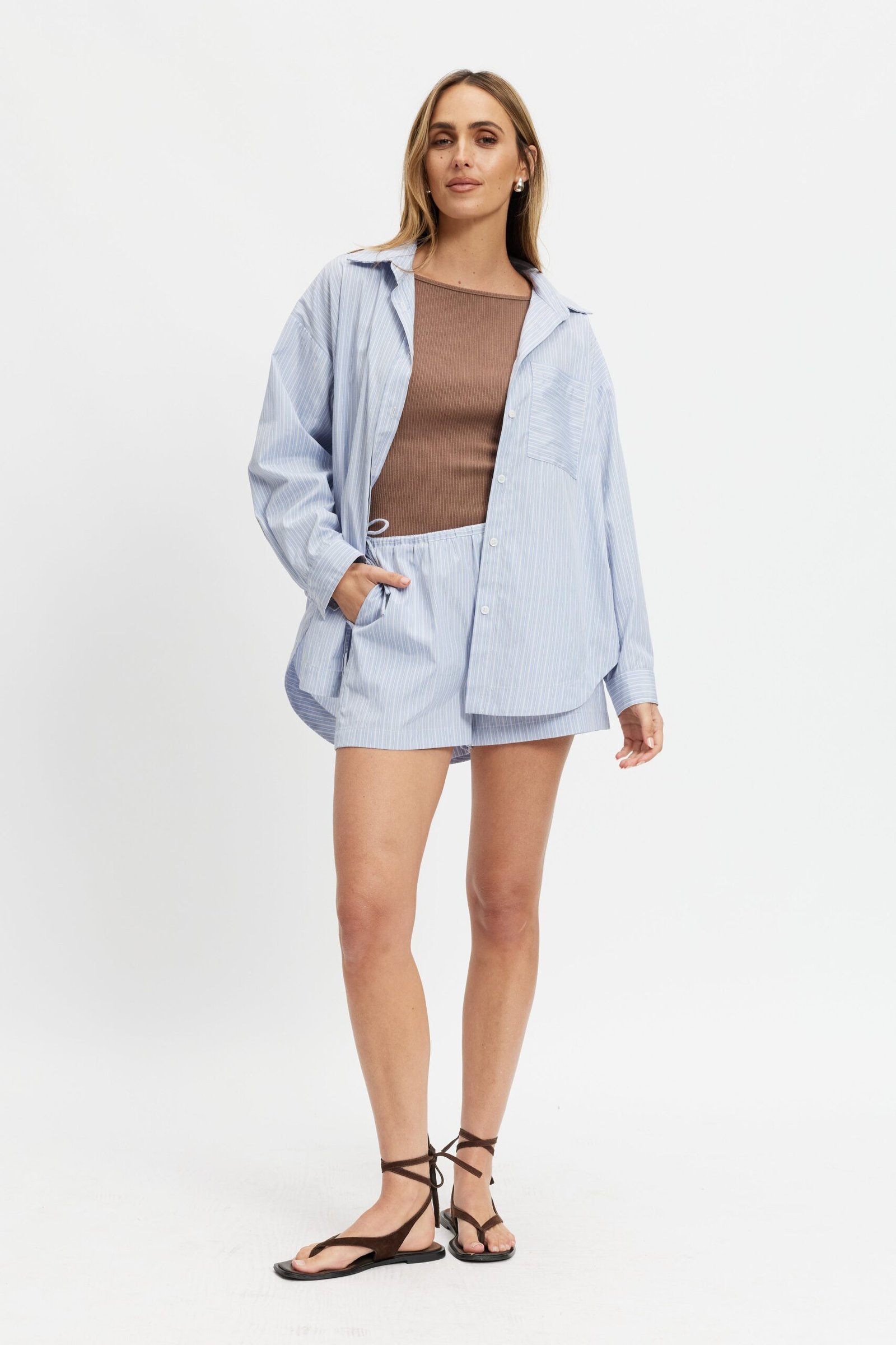 Juliette Stripe Poplin Short – Blue Multi