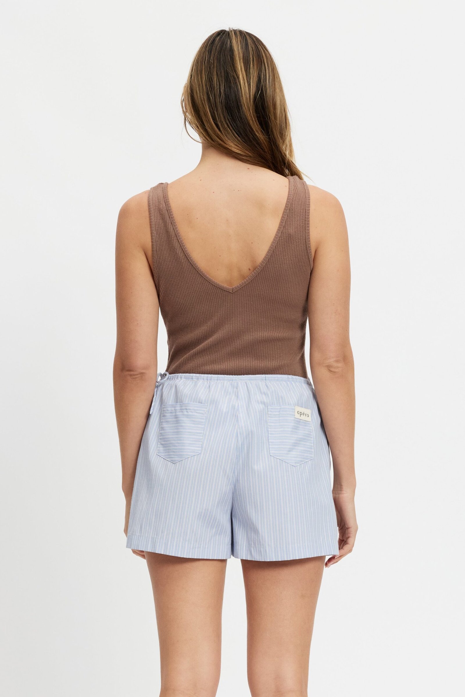 Finished with front side seam pockets, back patch pockets, and a signature Apéro canvas tag, this unlined style offers a breathable, non-sheer wear perfect for everyday outfitting.