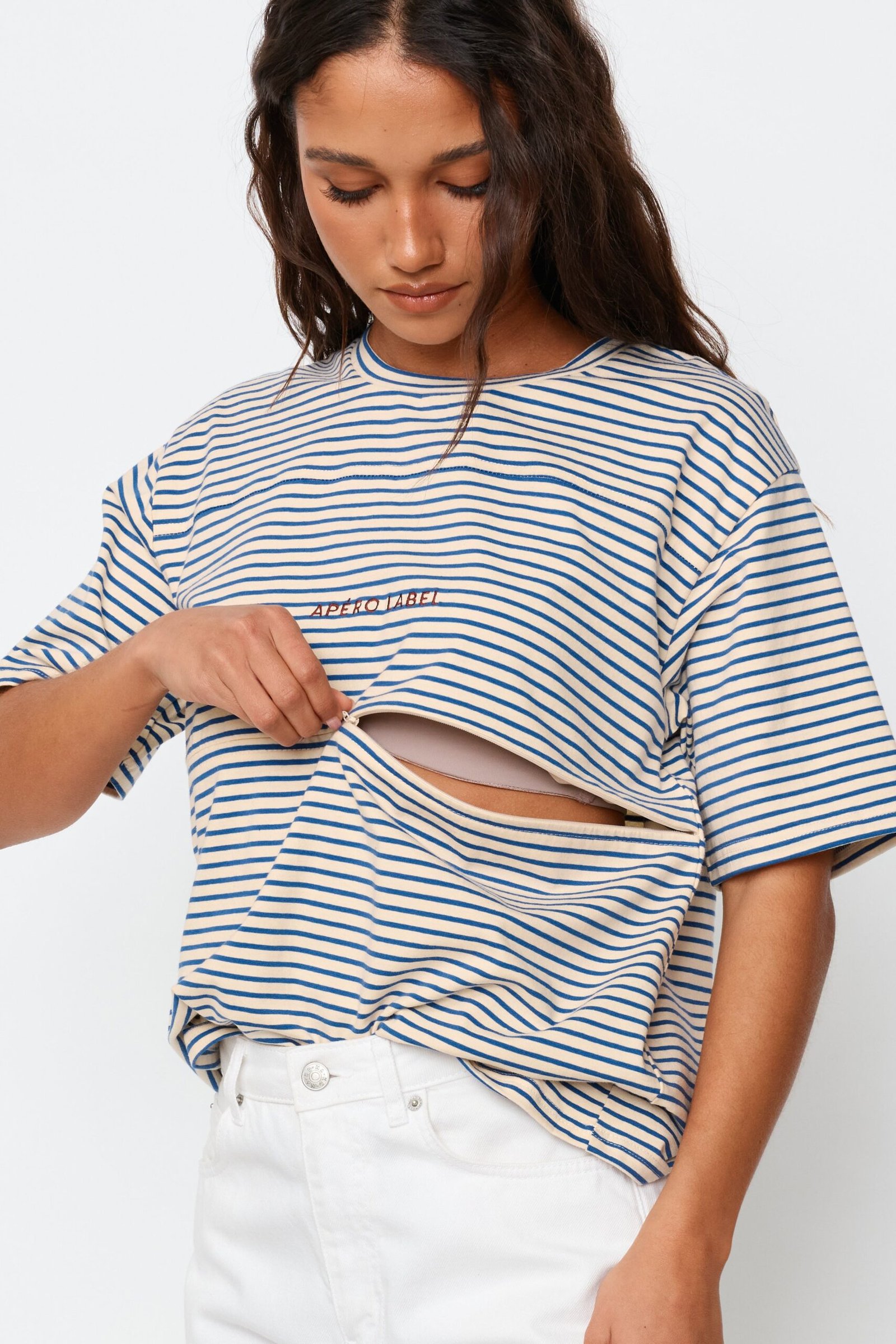 The Label Stripe Panel Tee is where style meets motherhood. Featuring a discreet, invisible two-way zipper seamlessly integrated into the bottom seam of the front bust panel, this tee provides easy access for feeding. The side seam pullers glide effortlessly across, making feeding on-the-go a breeze.