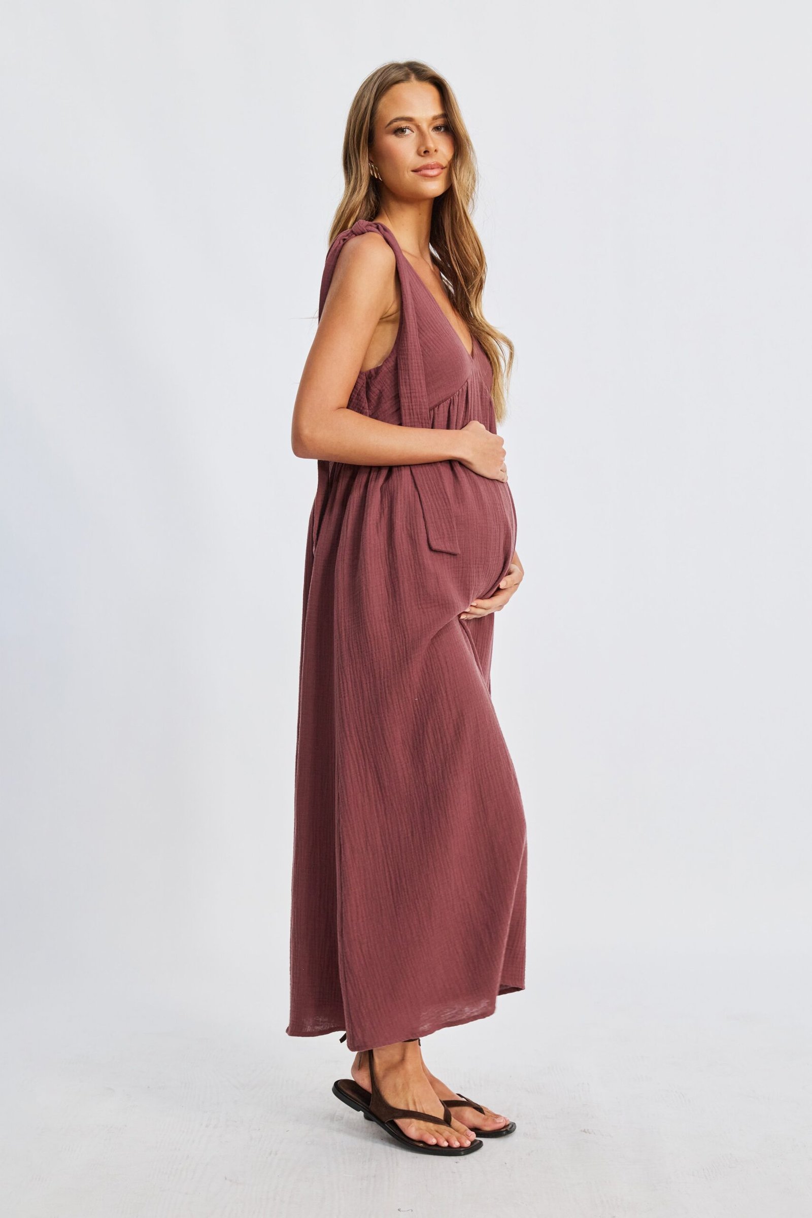 Made for warm, sunny days, the Mallorca Babydoll Midi Dress in a new stunning Mulberry shade is a must-have for your wardrobe. Crafted from lightweight fabric, it combines effortless style with all-day comfort. Featuring optional strap ties and invisible zippers for discreet breastfeeding access, combining function and fashion.