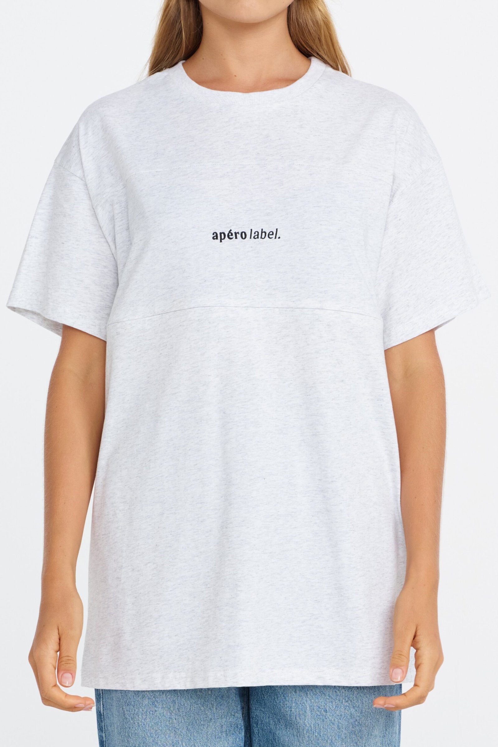 Elevate your everyday wardrobe with the Minimalist Embroidered Longline Tee. Designed for versatility and comfort, this piece features a discreet two-way zipper along the underbust panel for easy on-the-go breastfeeding access.
