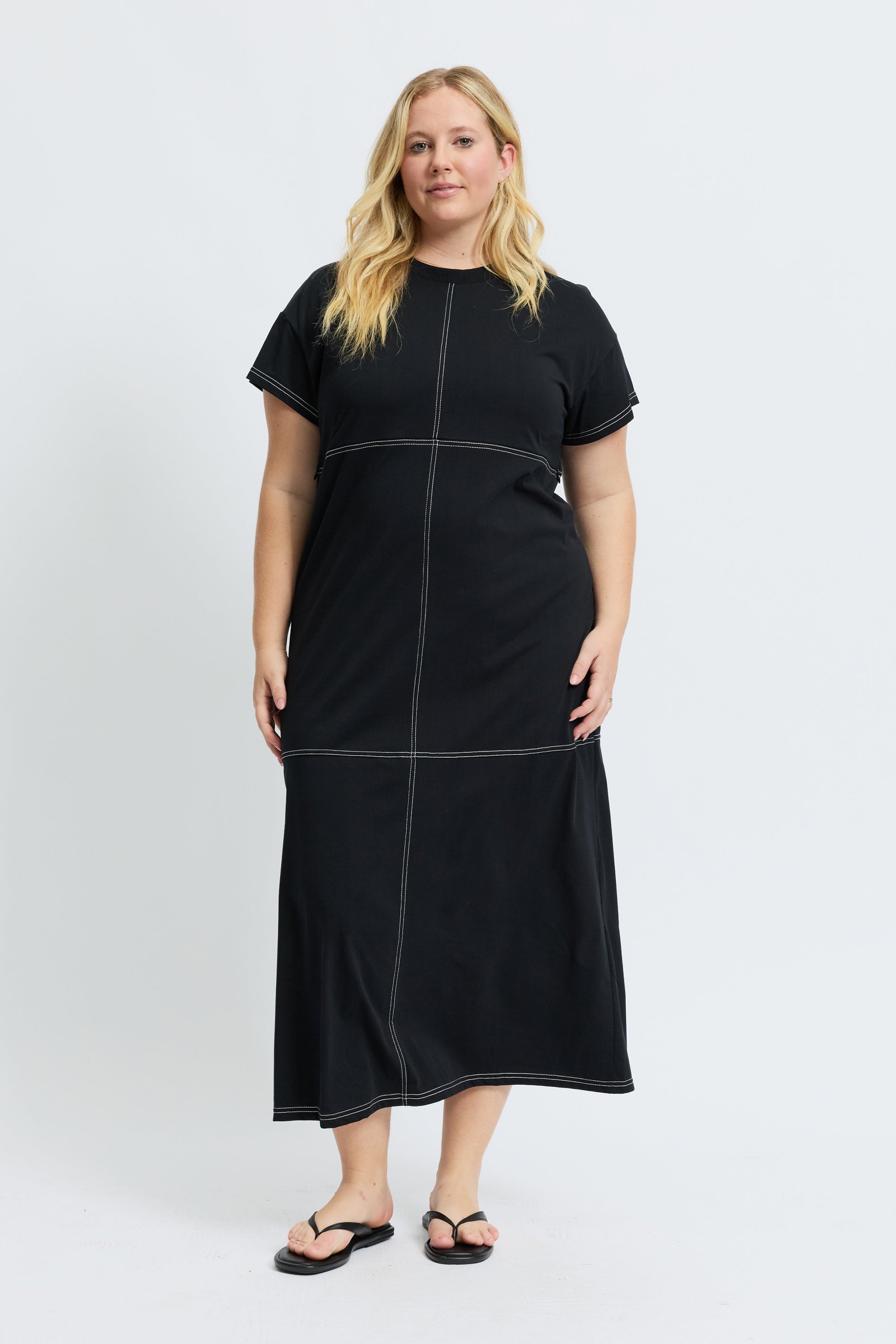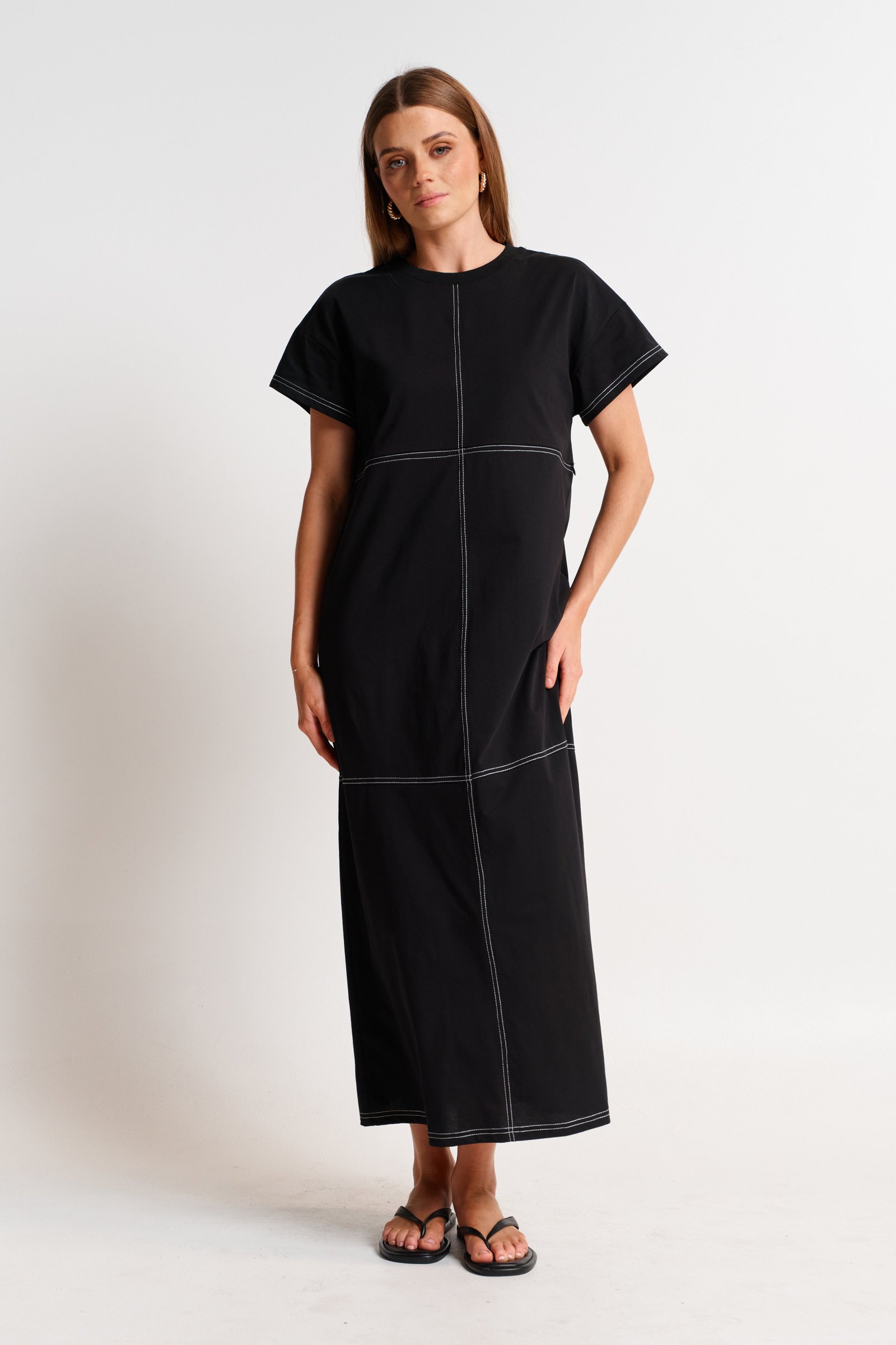 Be the first to review “Miro Contrast Panel Midi Tee Dress – Black / White”
