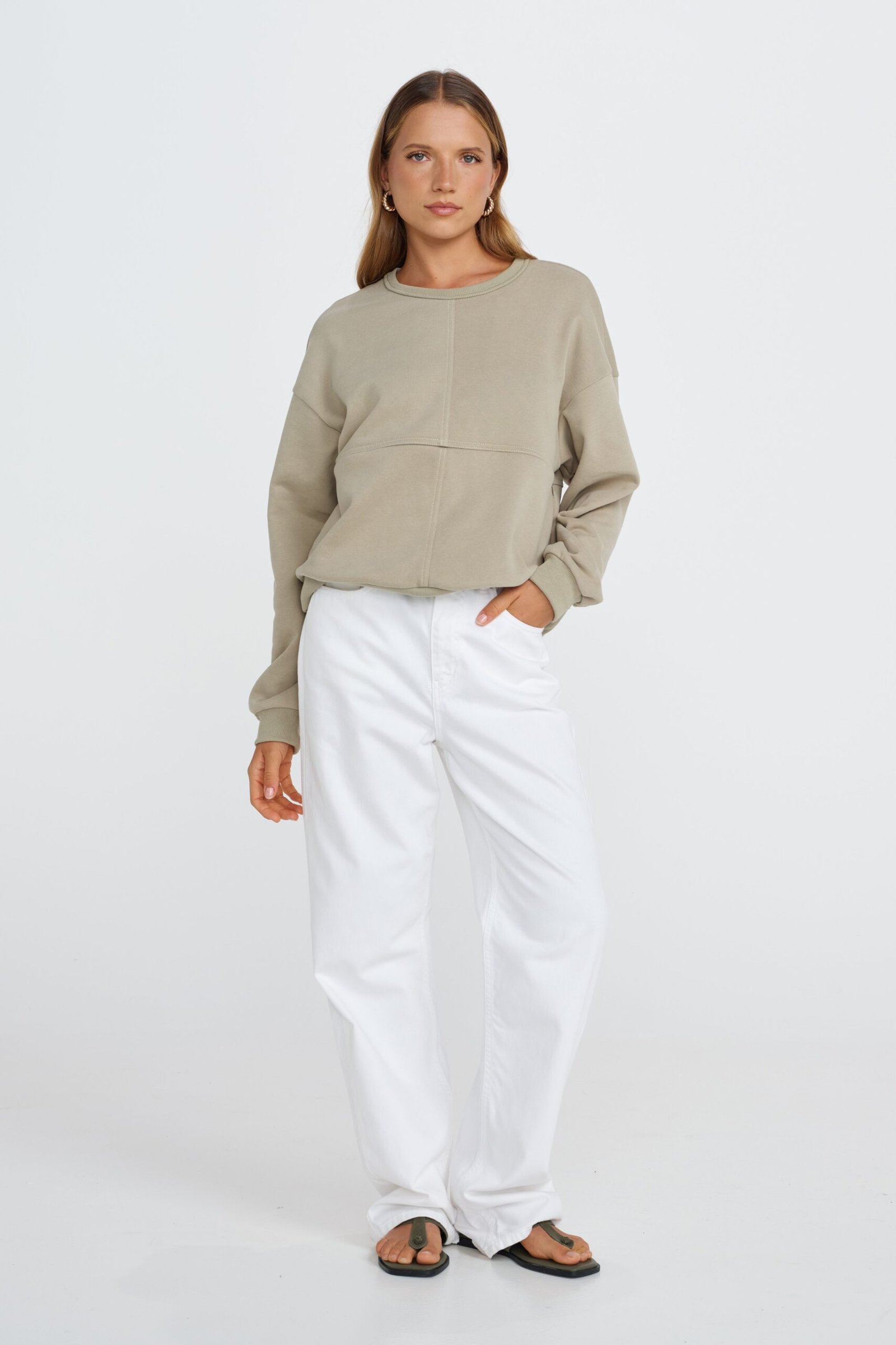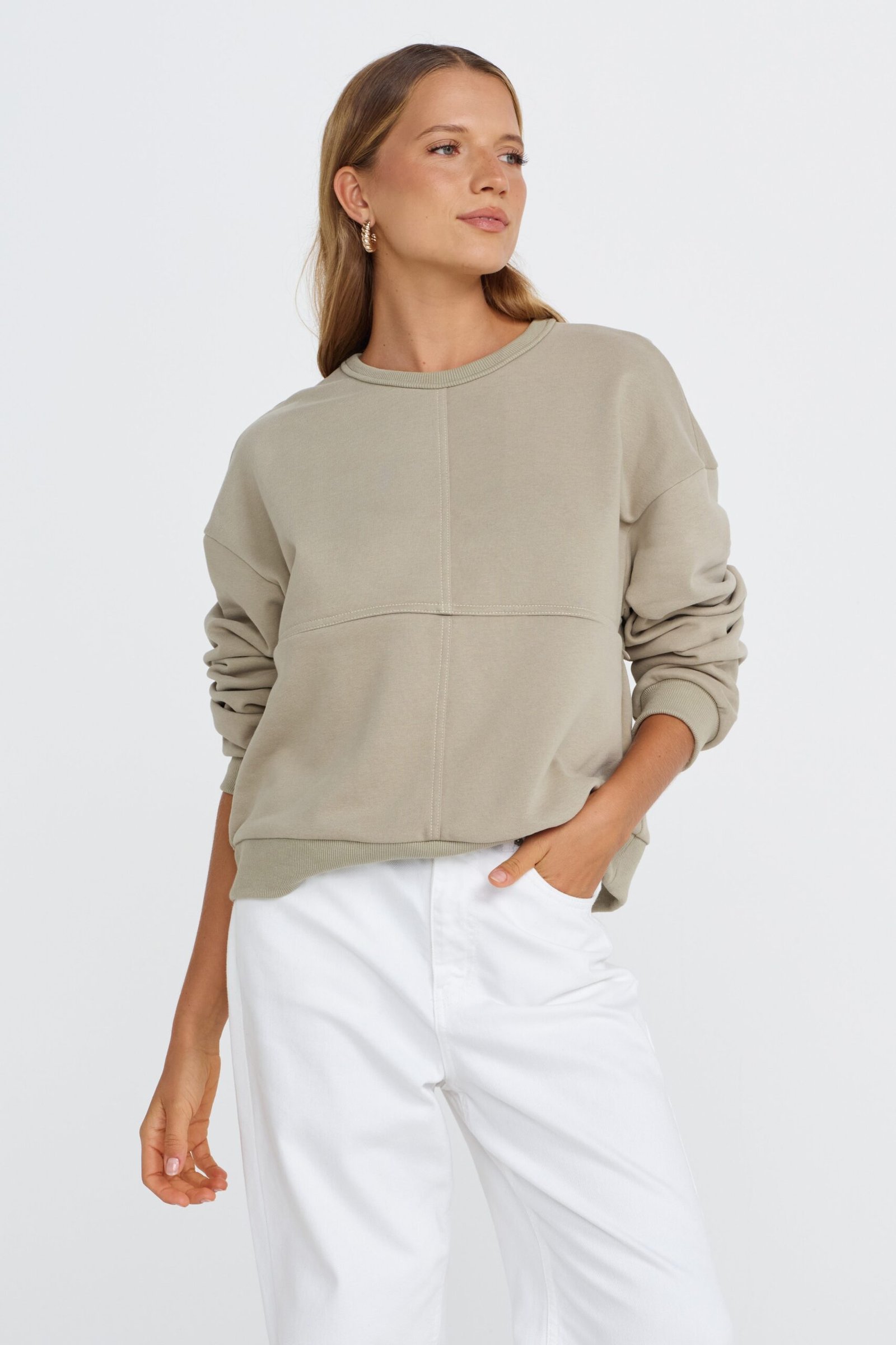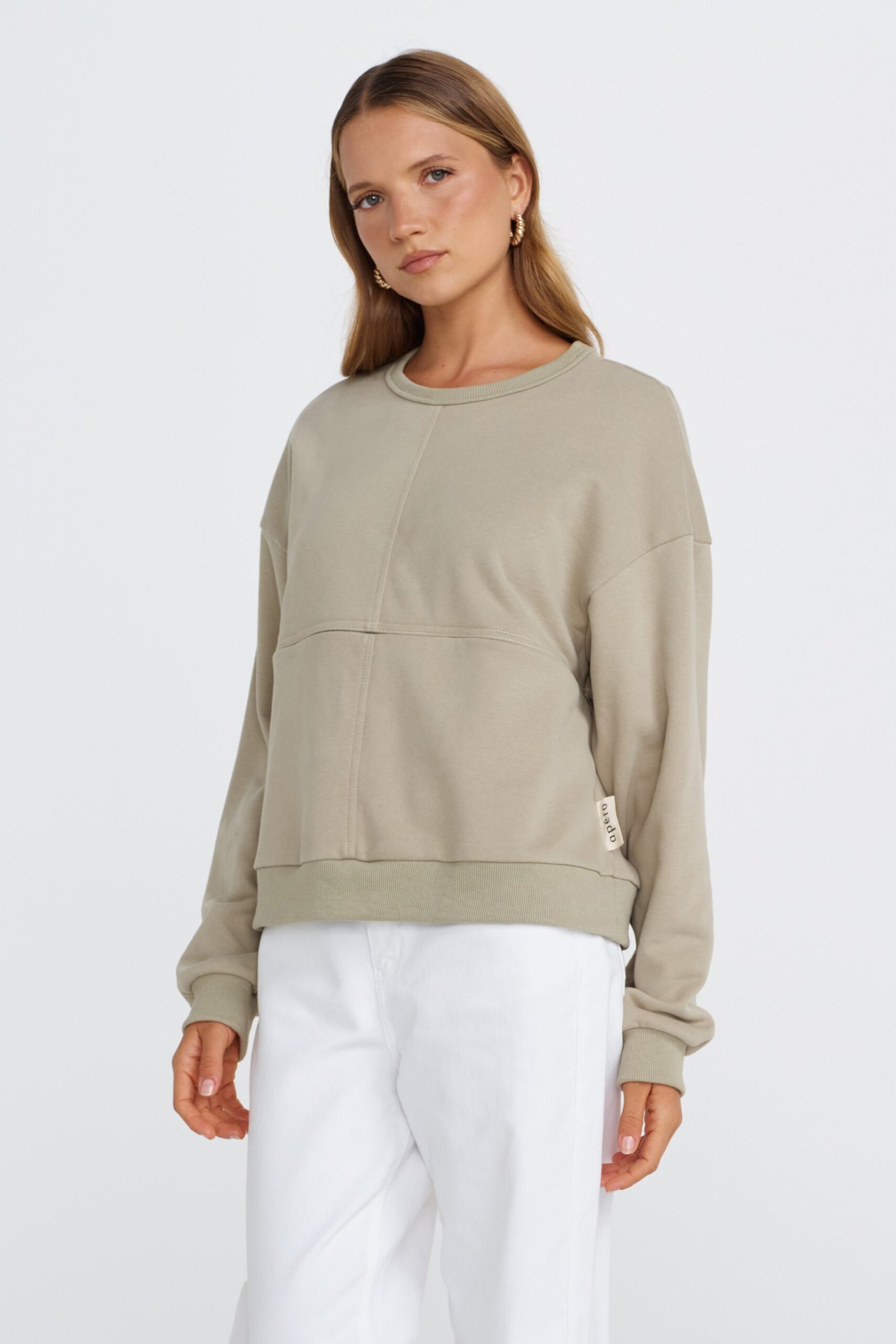 The Miro Oversized Panel Jumper in Sage/Cream is where comfort meets thoughtful design. Featuring a discreet two-way invisible zipper hidden along the front underbust seam, this jumper offers easy, seamless breastfeeding access without compromising on style.