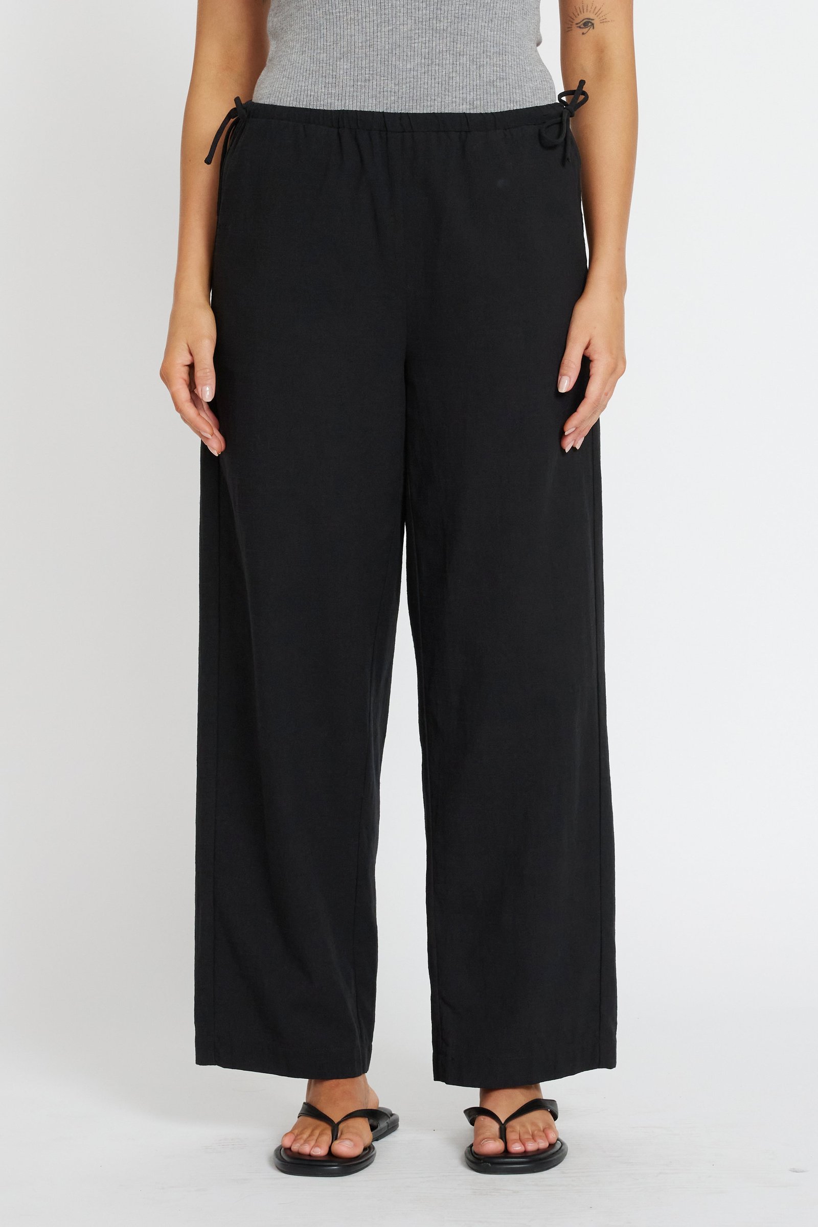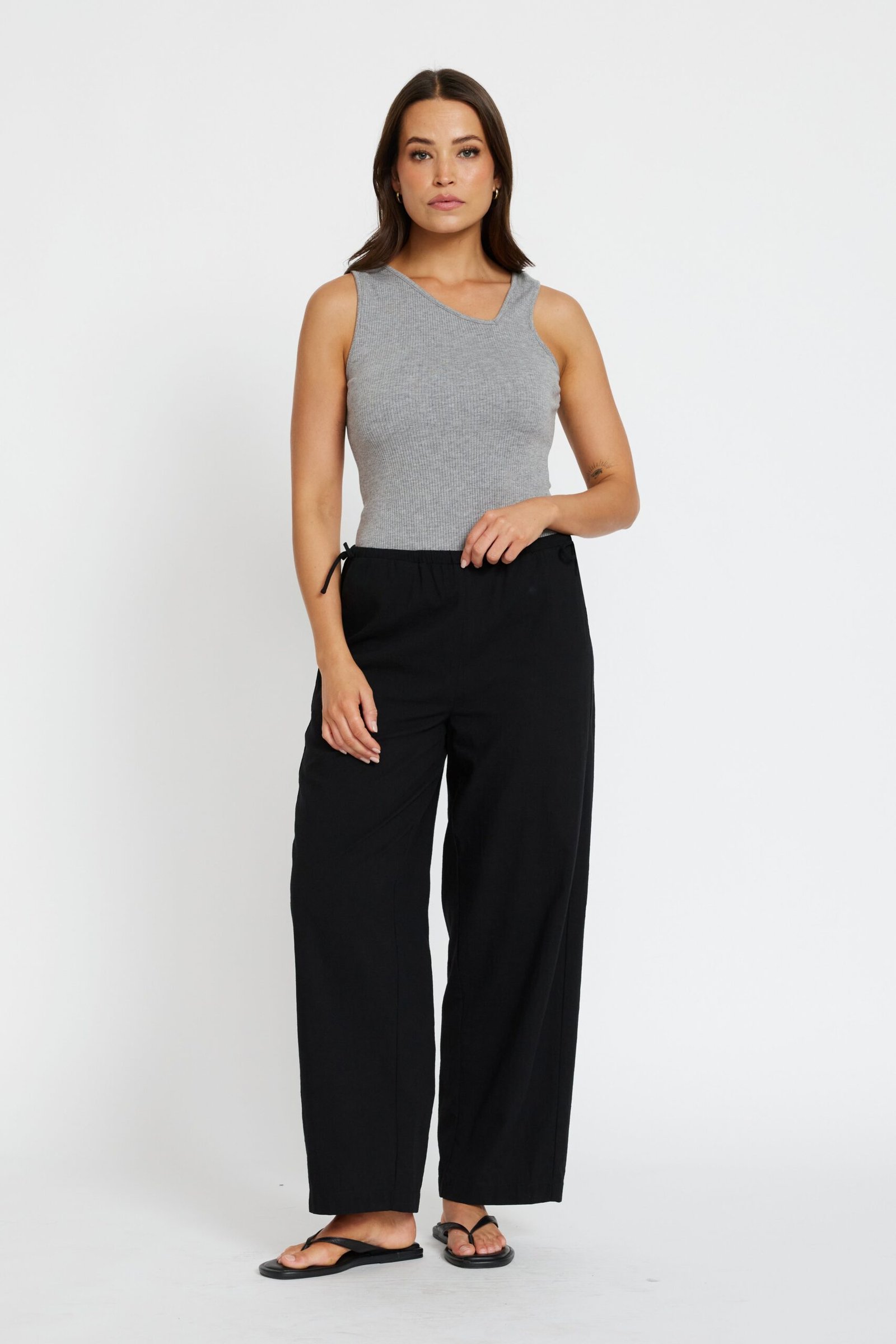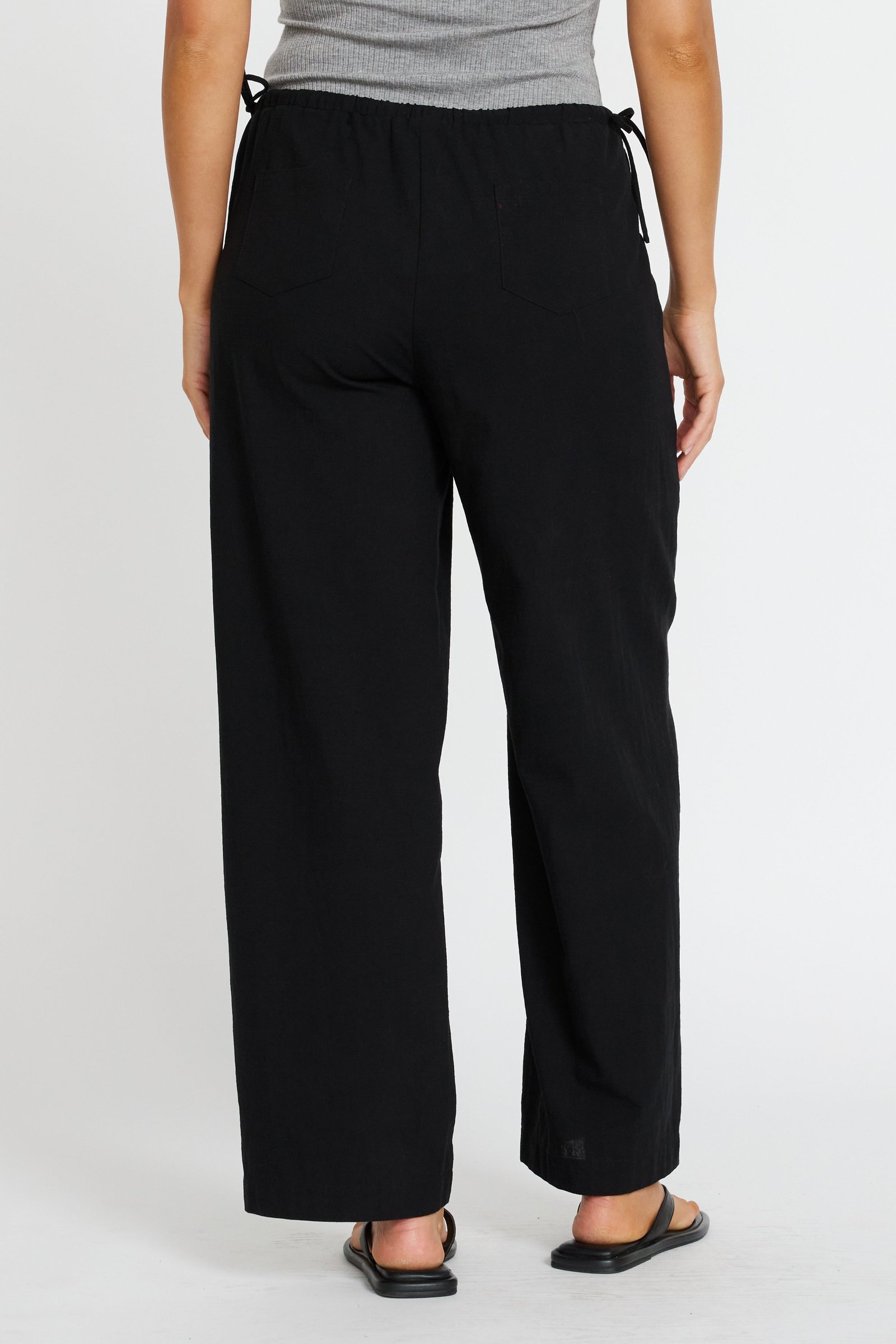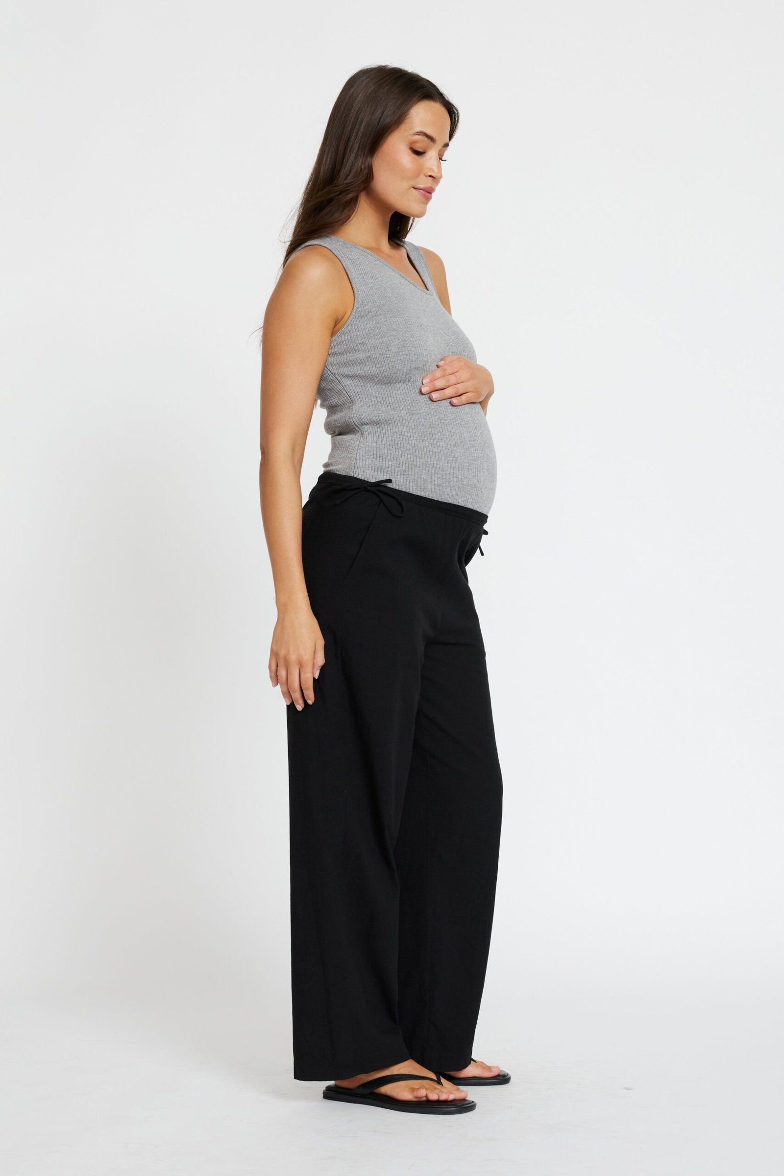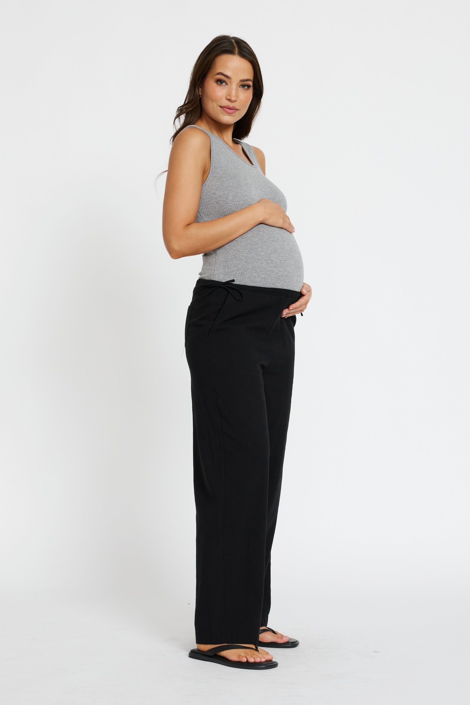 The Myra Stripe Barrel Leg Drawstring Pants in Black offer comfort and style in a lightweight cotton blend. The fully adjustable double-tie drawstring waistband accommodates a growing bump and can be adjusted post pregnancy for a more gathered look. Designed with a mid-rise waistline, these pants also look great worn low rise under bump for a flattering look.