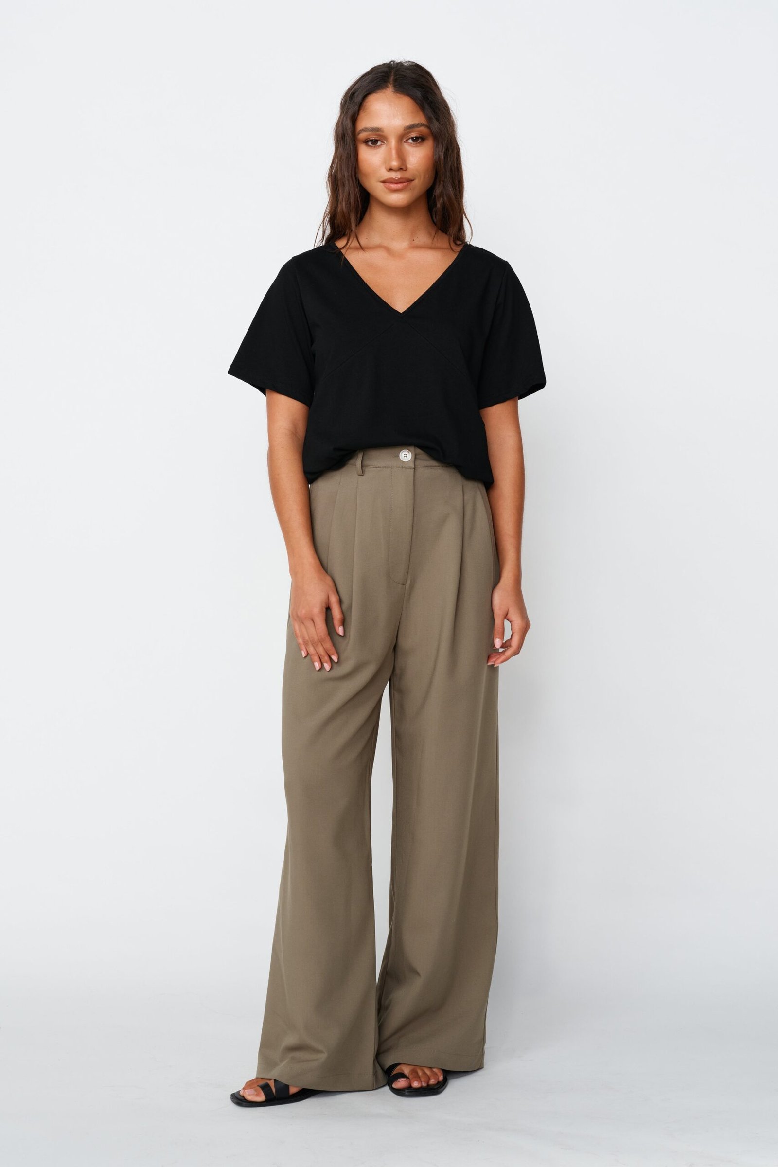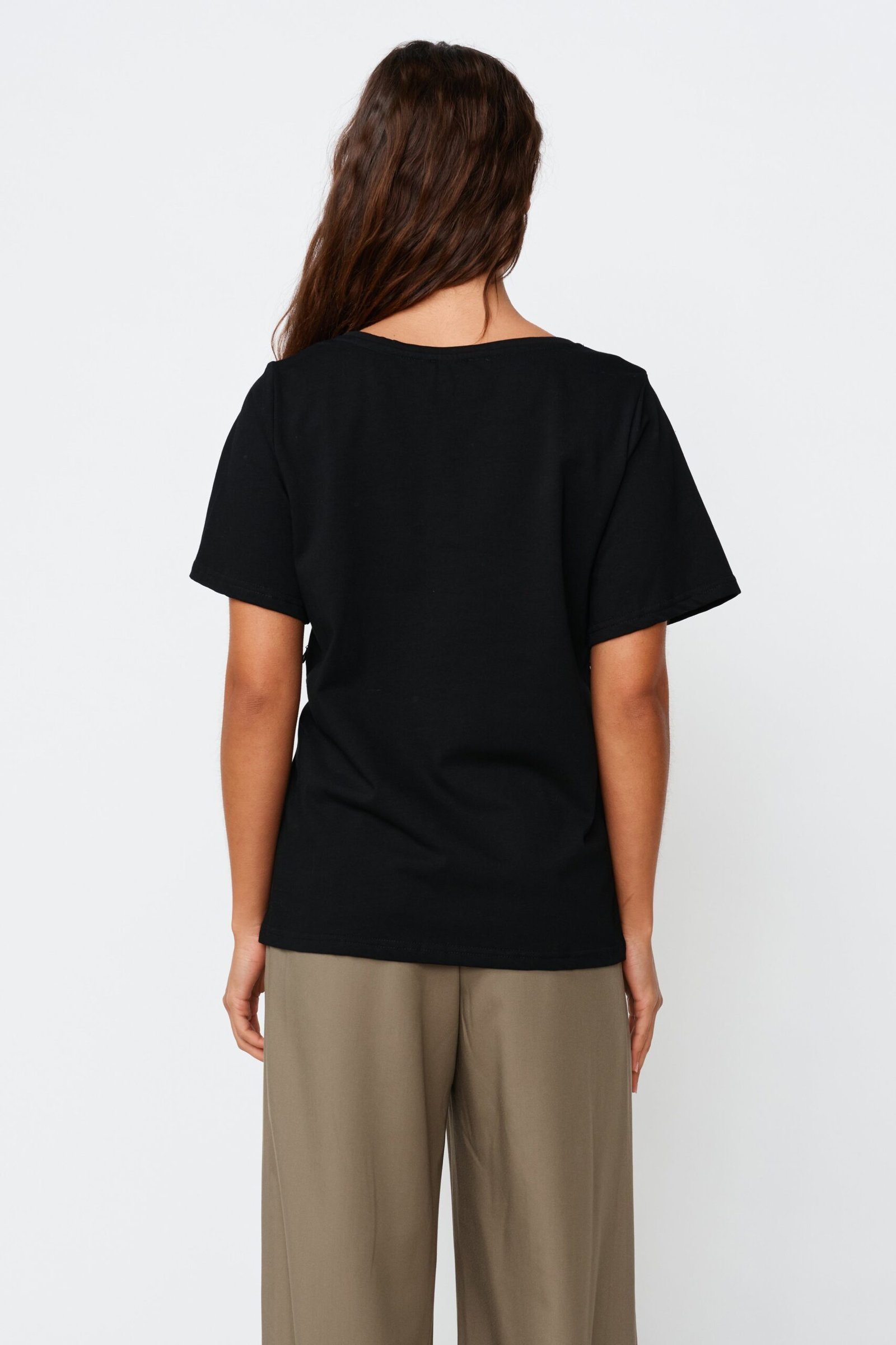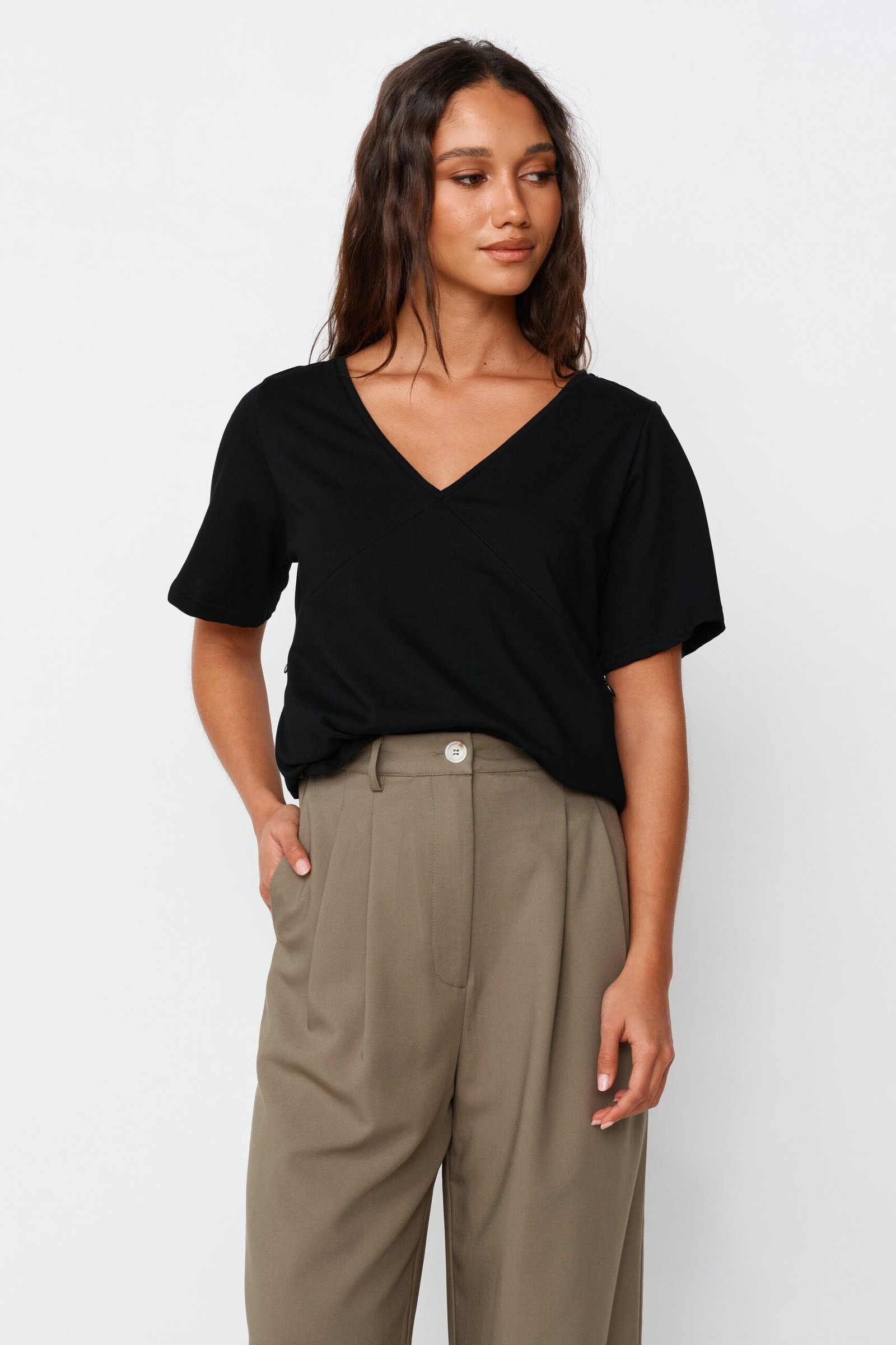 Introducing a new cut to your staple wardrobe, the V-Neck Panel Tee in Black.