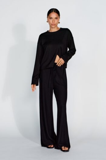 Ivy Stripe Wide Leg Pants – Cream Marle / Black