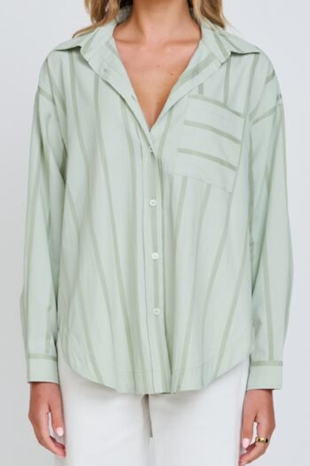 Morgan Stripe Wrap Button-Down Shirt – Mint