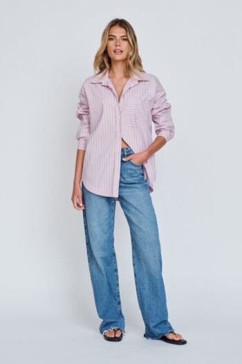 Morgan Stripe Wrap Button-Down Shirt – Pink Multi