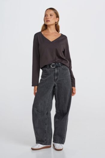 Zadie Pinstripe Adjustable Wide Leg Trouser – Grey
